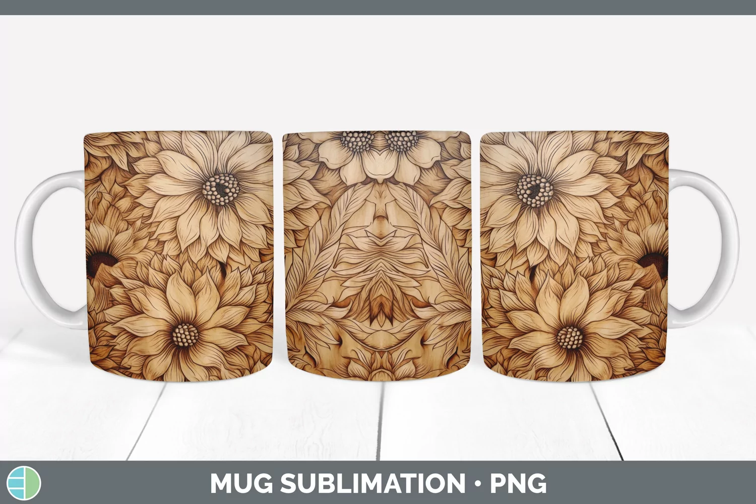 Similar Design Products to Wood Burned Dahlia Flowers Mug Wrap | Sublimation Coffee Cup