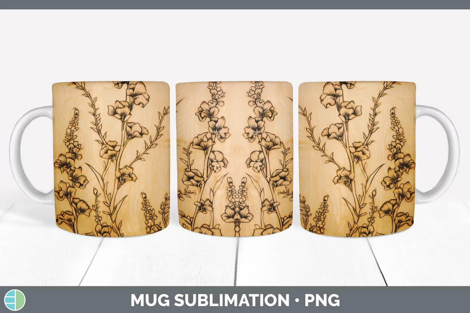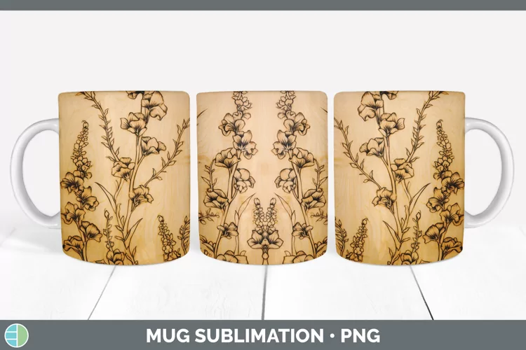 Wood Burned Snapdragon Flowers Mug Wrap | Sublimation Coffee