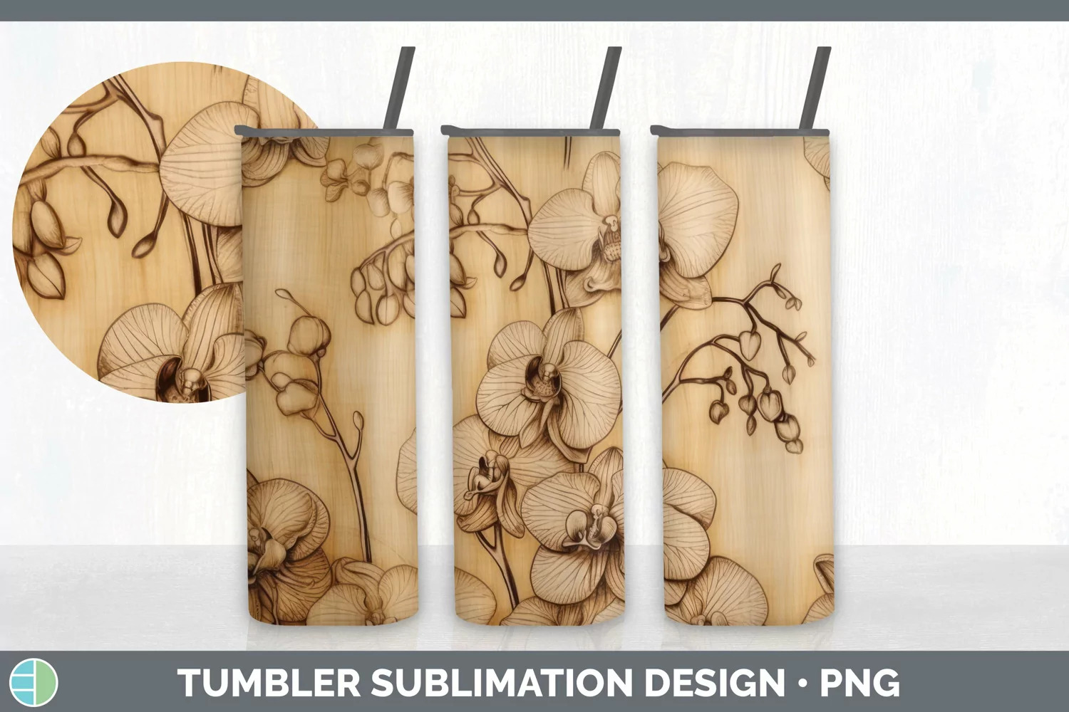 Wood Burned Orchid Flowers Tumbler | Sublimation 20 oz Skinn