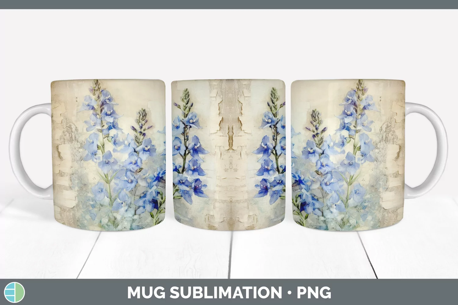 Vintage Delphinium Flowers Mug Wrap | Sublimation Coffee Cup