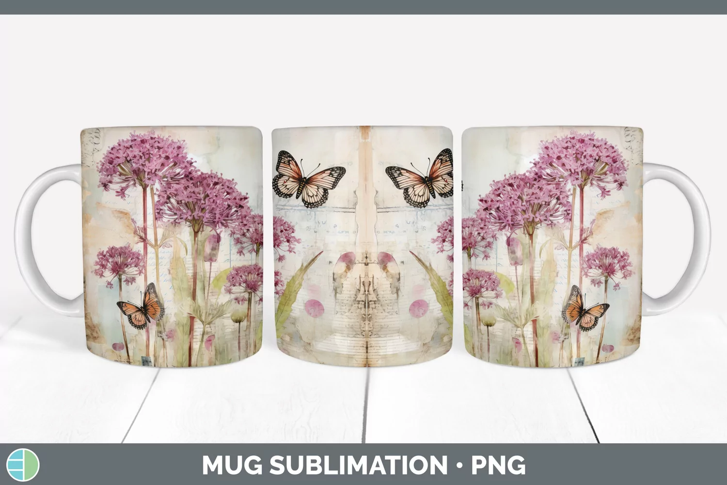 Vintage Allium Flowers Mug Wrap | Sublimation Coffee Cup Des