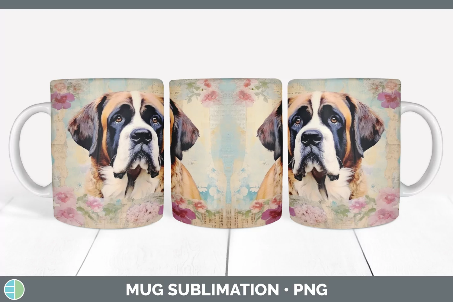 Vintage Saint Bernard Dog Mug Wrap | Sublimation Coffee Cup example image 1