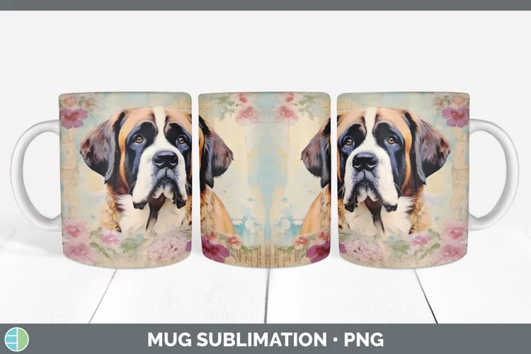 Vintage Saint Bernard Dog Mug Wrap | Sublimation Coffee Cup