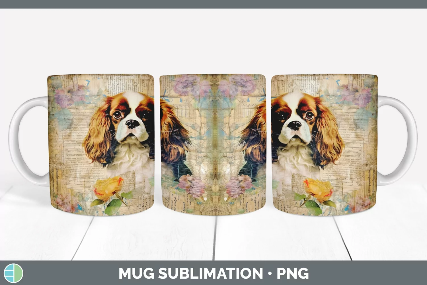 Vintage Cavalier King Charles Spaniel Dog Mug Wrap | Sublima