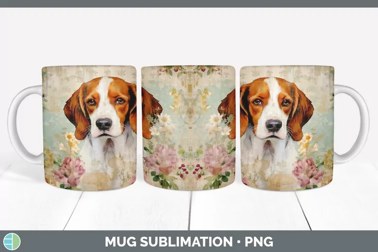 Vintage Brittany Dog Mug Wrap | Sublimation Coffee Cup Desig