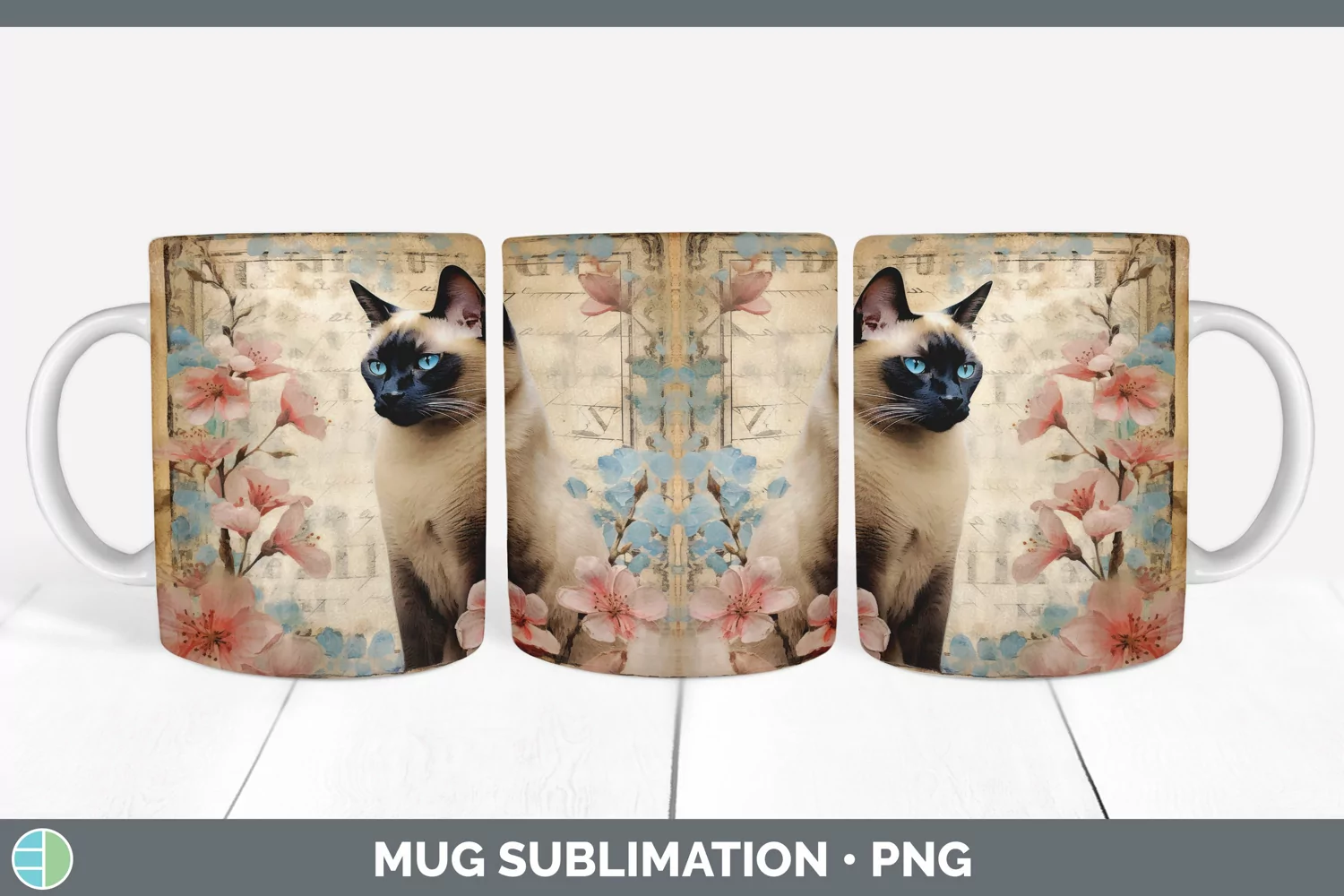 Vintage Siamese Cat Mug Wrap | Sublimation Coffee Cup Design example image 1