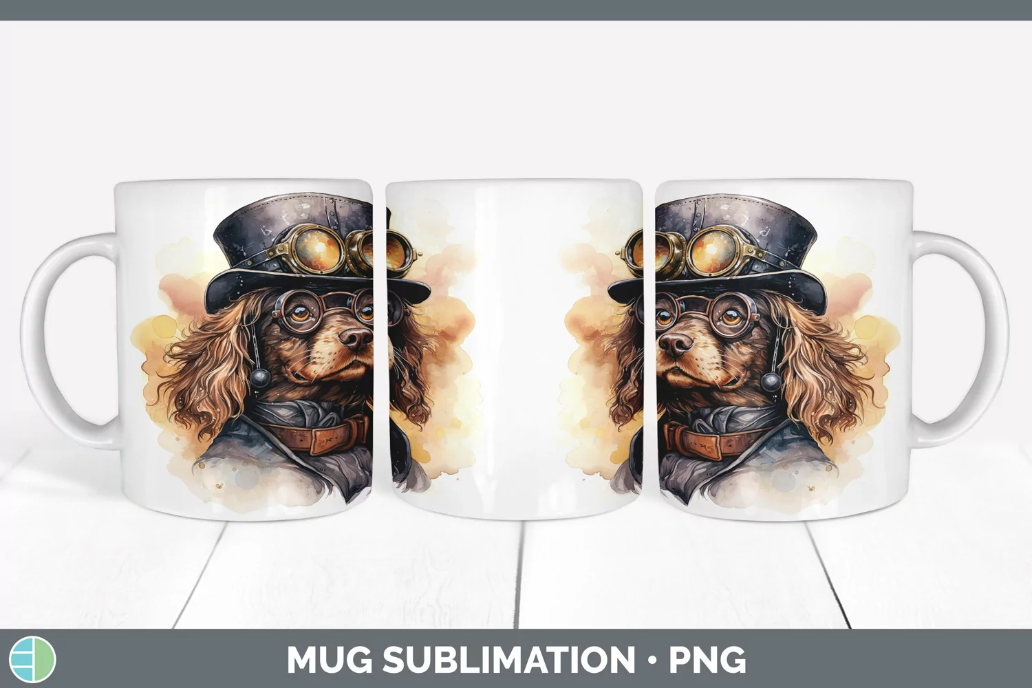 Steampunk Spaniel Dog Mug Wrap | Sublimation Coffee Cup Des