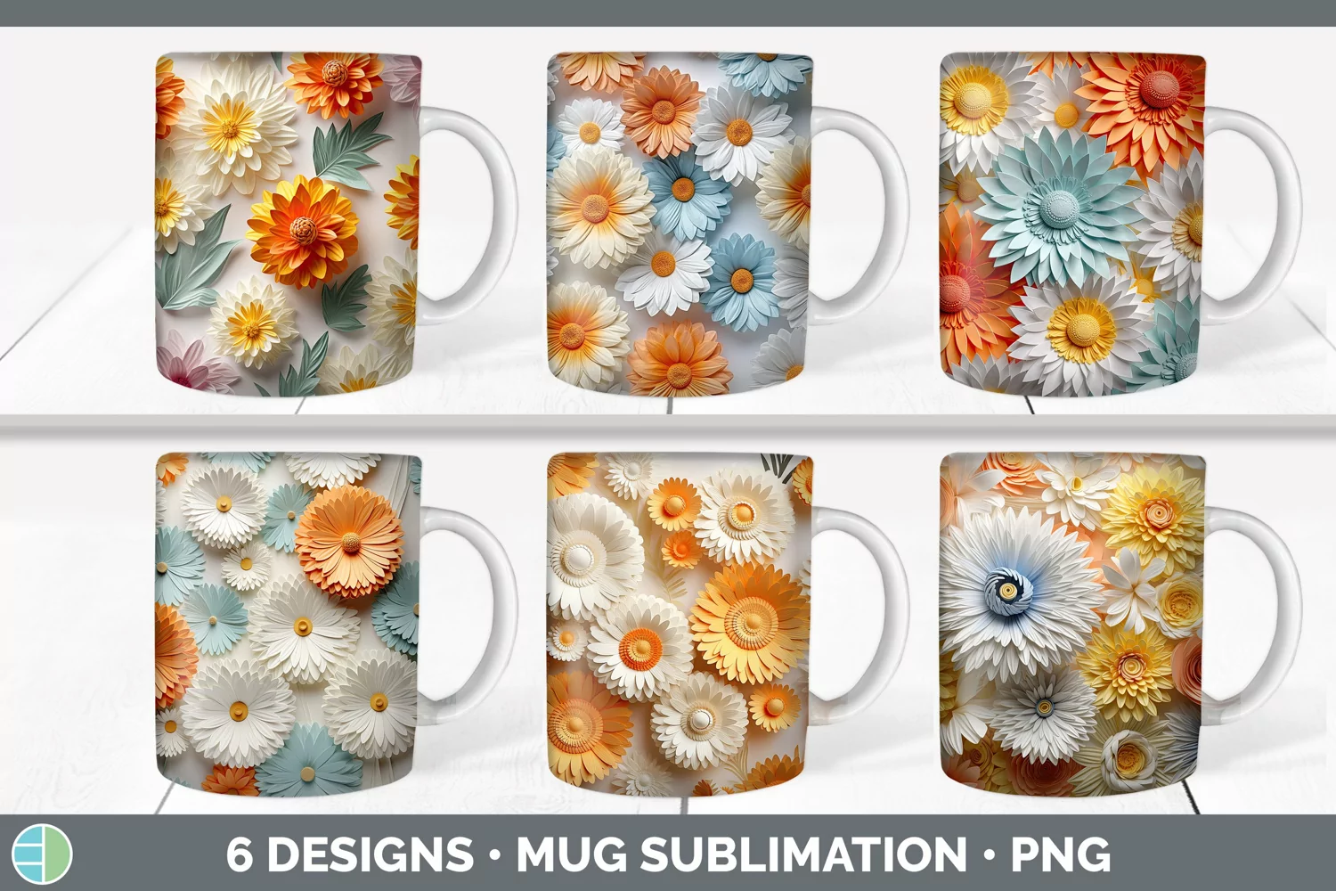 Similar Design Products to 3D Paper Calendula Flowers Mug Wrap | Bundle Coffee Cup Desi
