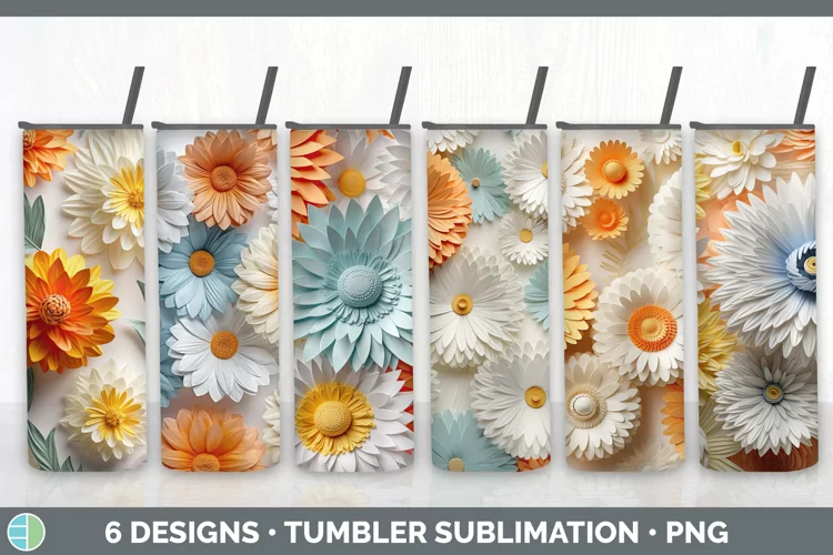 Similar Design Products to 3D Paper Calendula Flowers Tumbler | Bundle 20 oz Skinny Tum