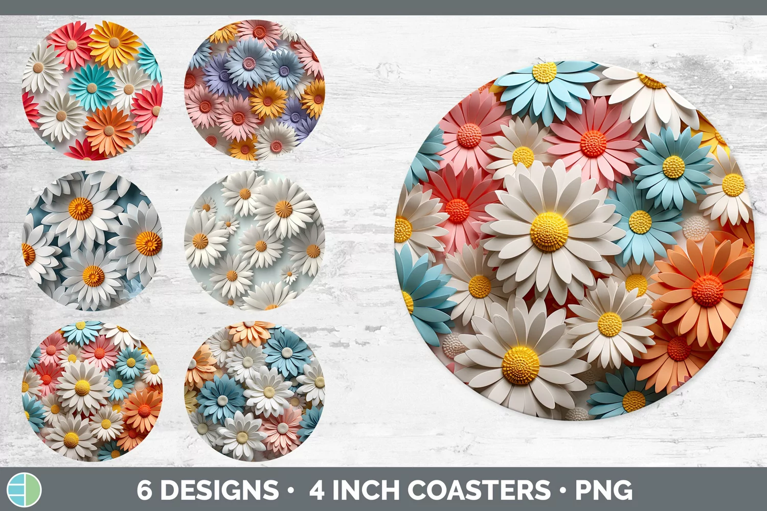 Bundle of six 3D Daisys Round Coaster designs.
