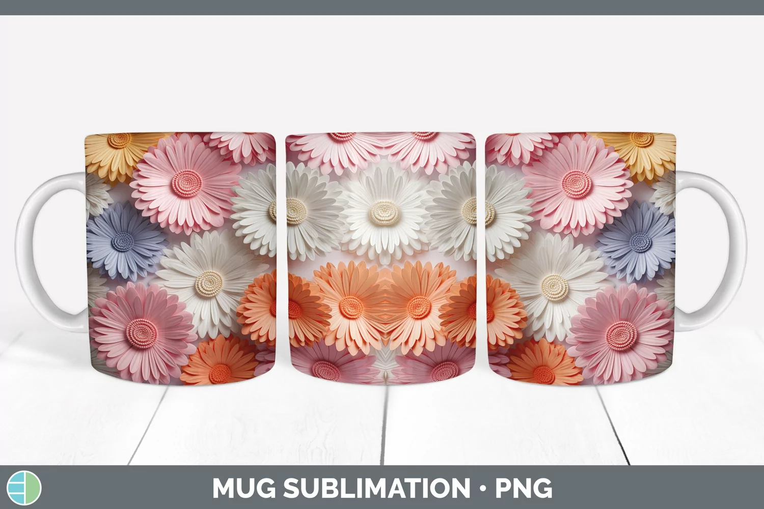 Similar Design Products to 3D Paper Gerbera Daisy Flowers Mug Wrap | Sublimation Coffee