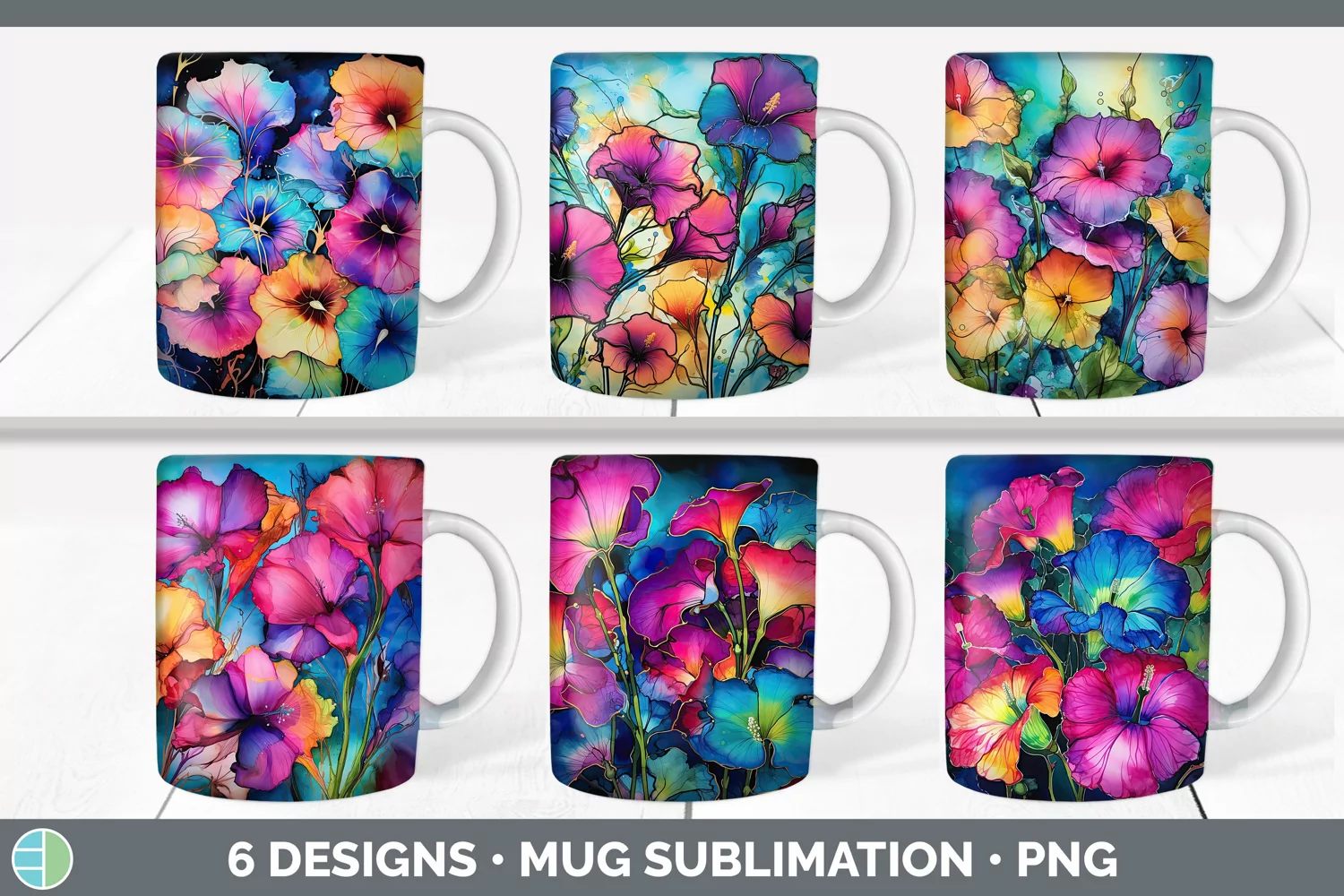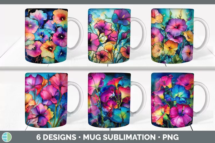 Bundle of six Alcohol Ink Morning Glories Mug Wrap designs.