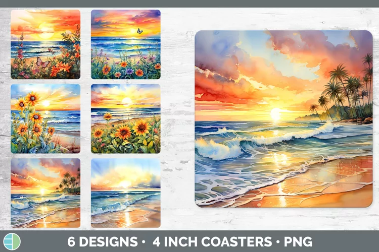 Similar Design Products to Pretty Beach Square Coaster | Bundle Coaster Designs