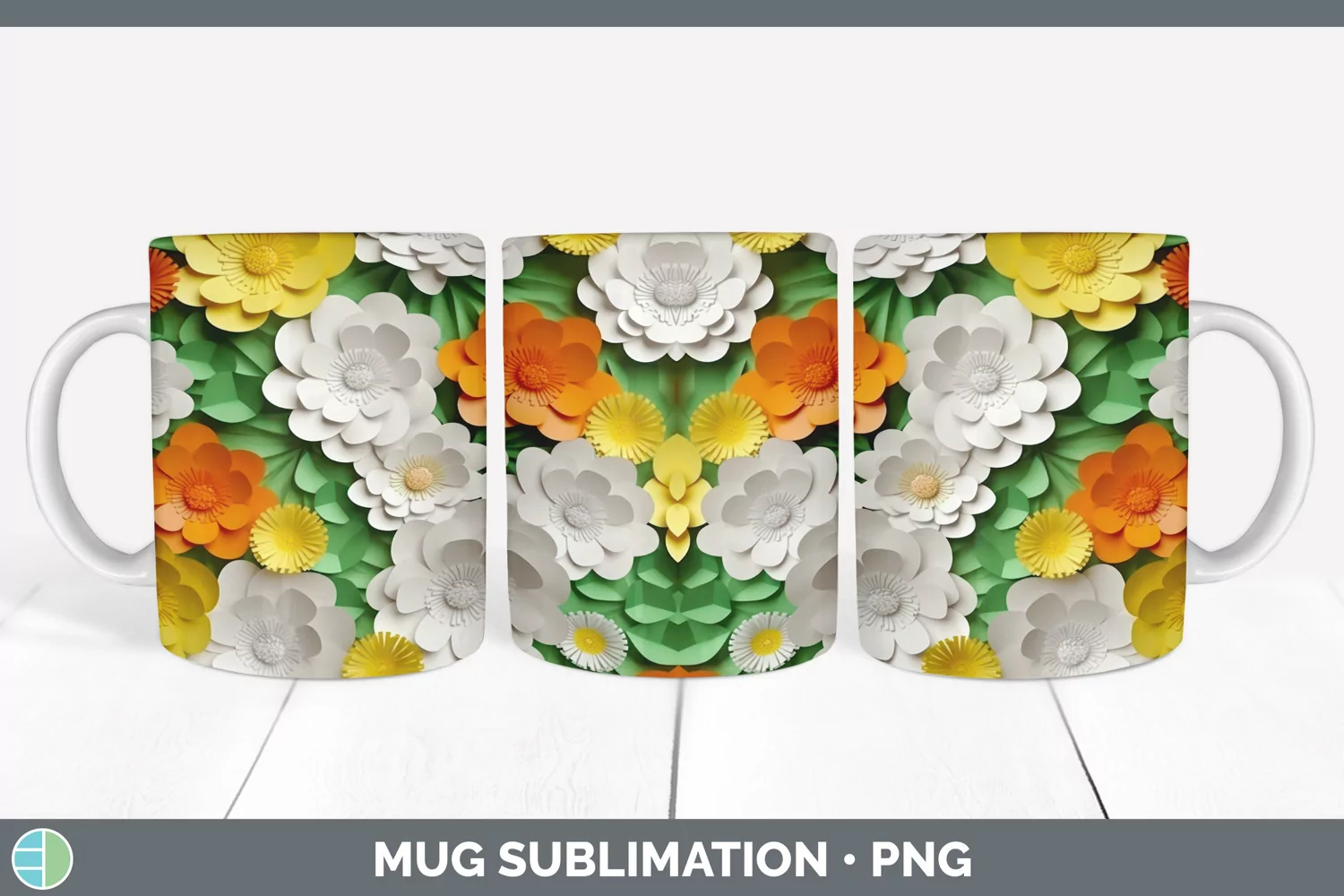 3D Paper Buttercup Flowers Mug Wrap | Sublimation Coffee Cup