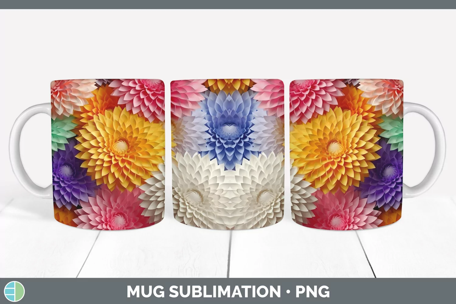 3D Paper Chrysanthemum Flowers Mug Wrap | Sublimation Coffee
