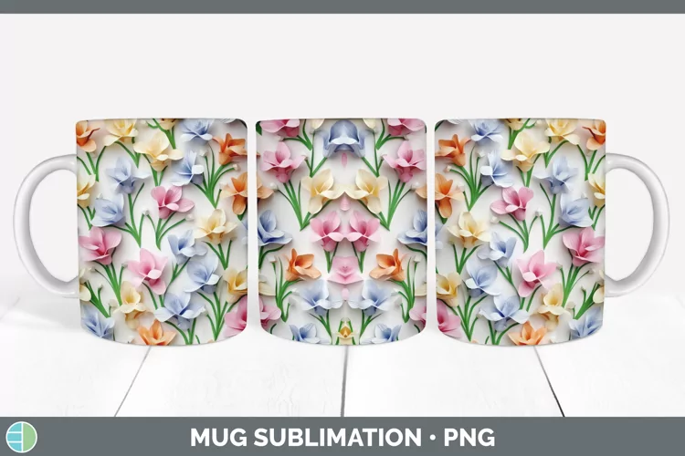 Similar Design Products to 3D Paper Freesia Flowers Mug Wrap | Sublimation Coffee Cup D