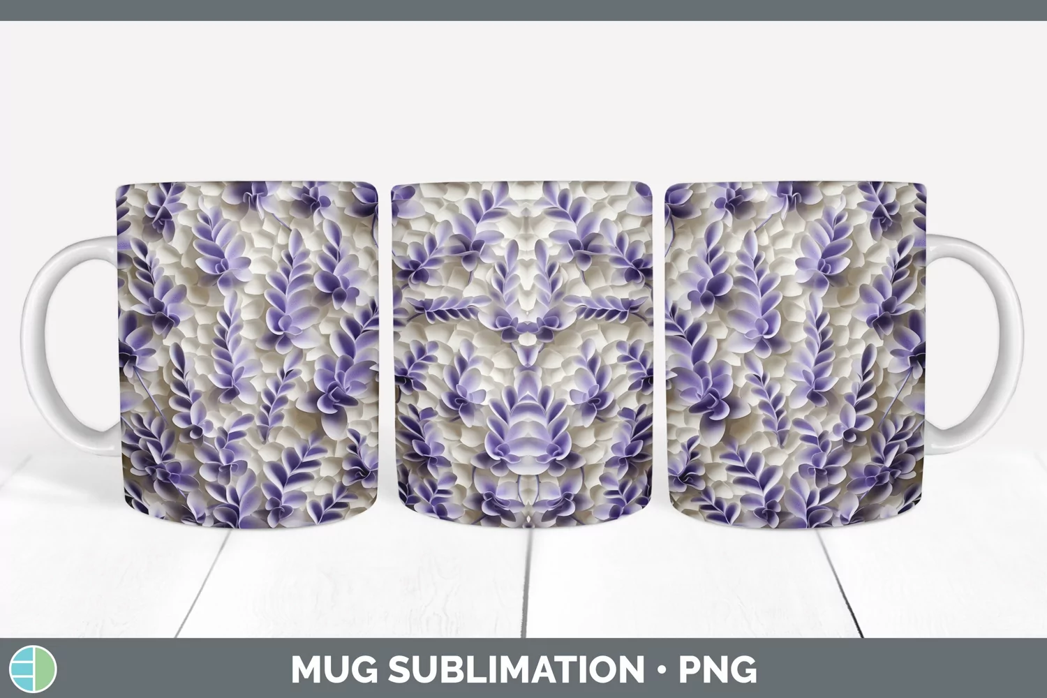 Similar Design Products to 3D Paper Lavender Flowers Mug Wrap | Sublimation Coffee Cup
