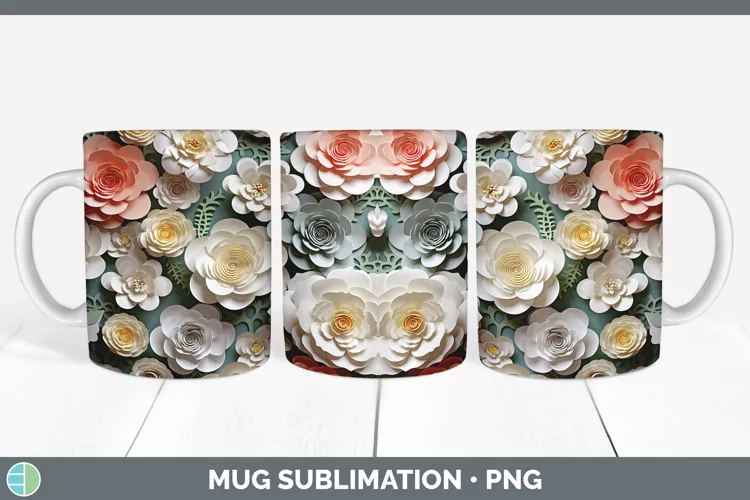 3D Paper Camellia Flowers Mug Wrap | Sublimation Coffee Cup