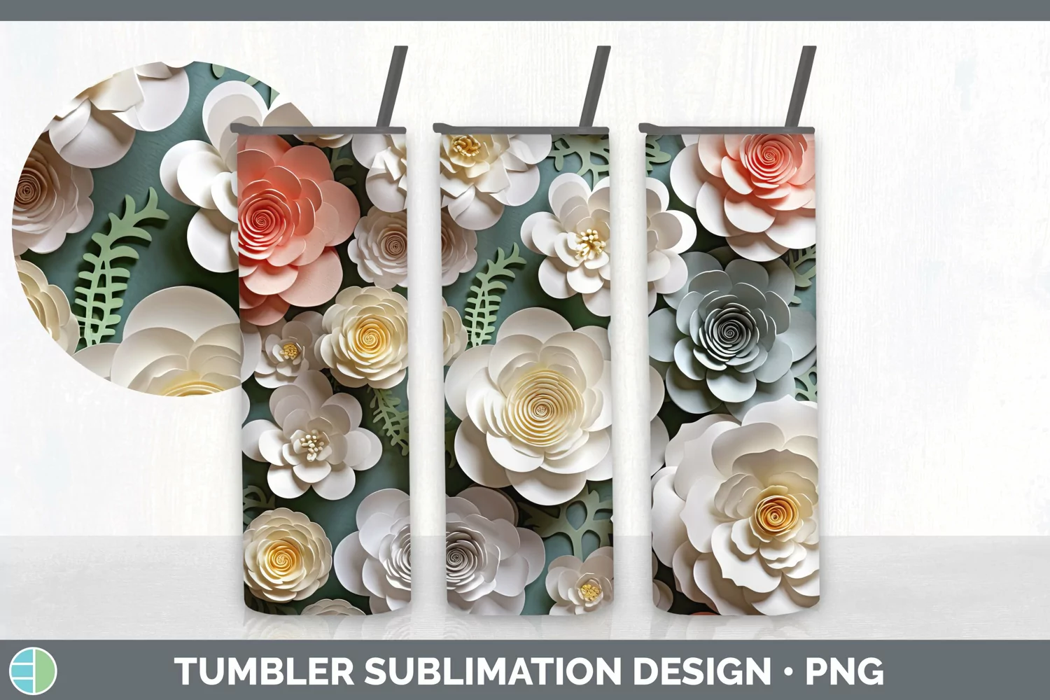Similar Design Products to 3D Paper Camellia Flowers Tumbler | Sublimation 20 oz Skinny