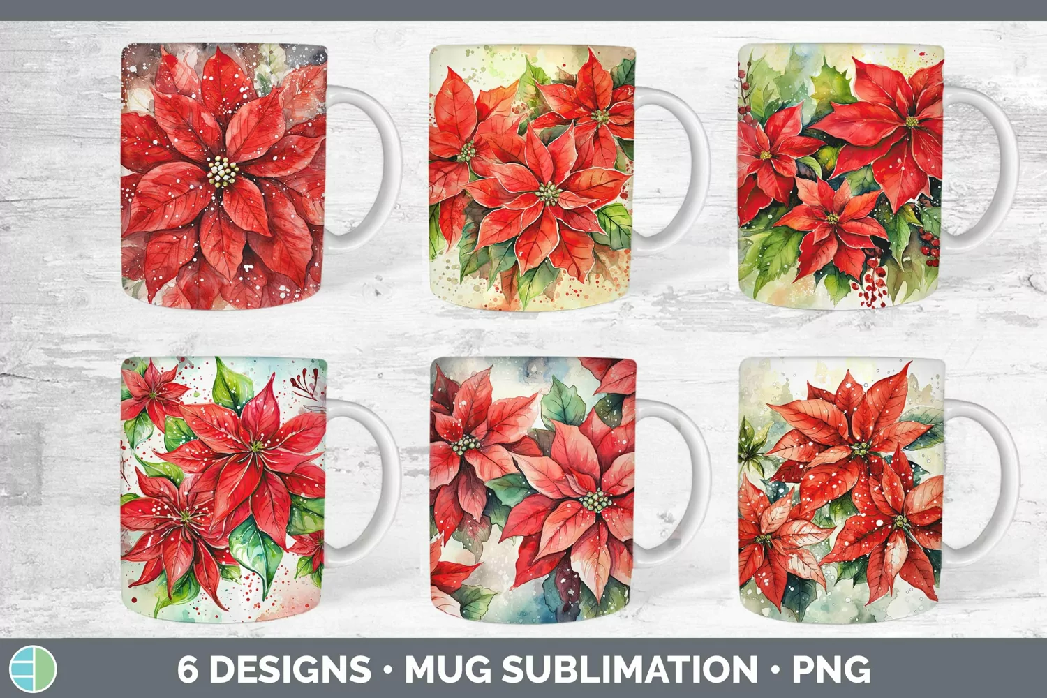 Christmas Poinsettia Mug Wrap | Bundle Coffee Cup Designs