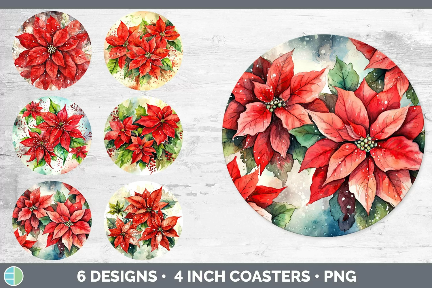 Christmas Poinsettia Round Coaster | Bundle Coaster Designs