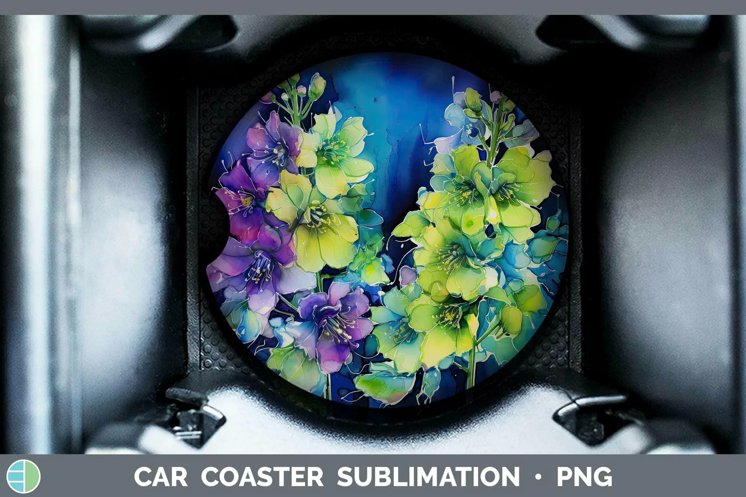 Neon Delphinium Car Coaster | Sublimation Coaster Designs