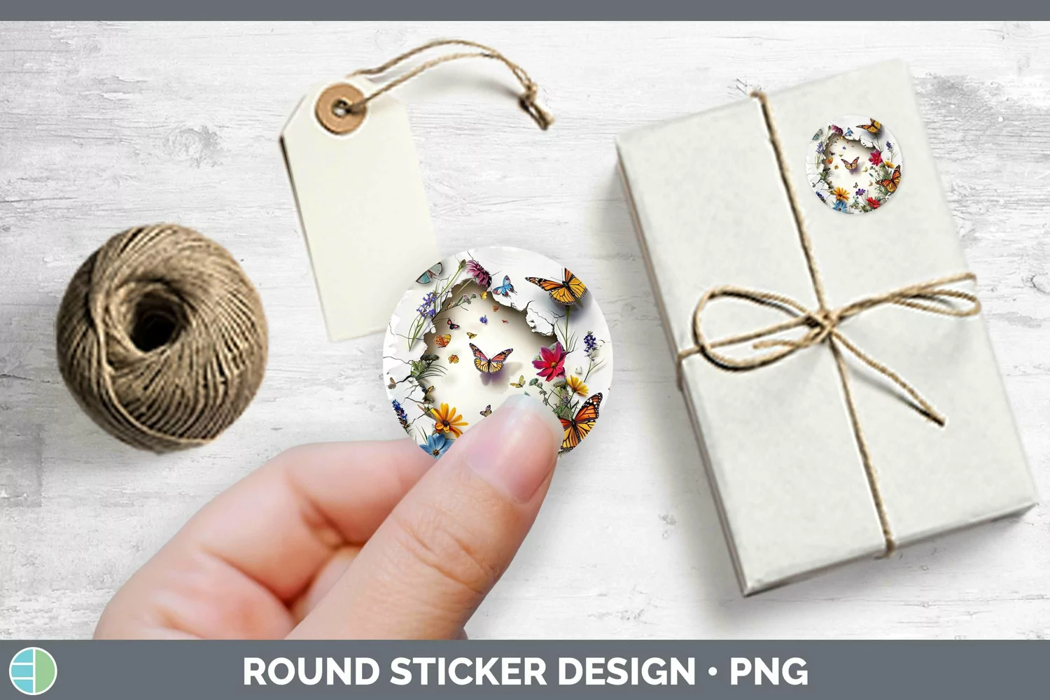 3D Hole in the Wall Butterfly Stickers | Round Labels Design