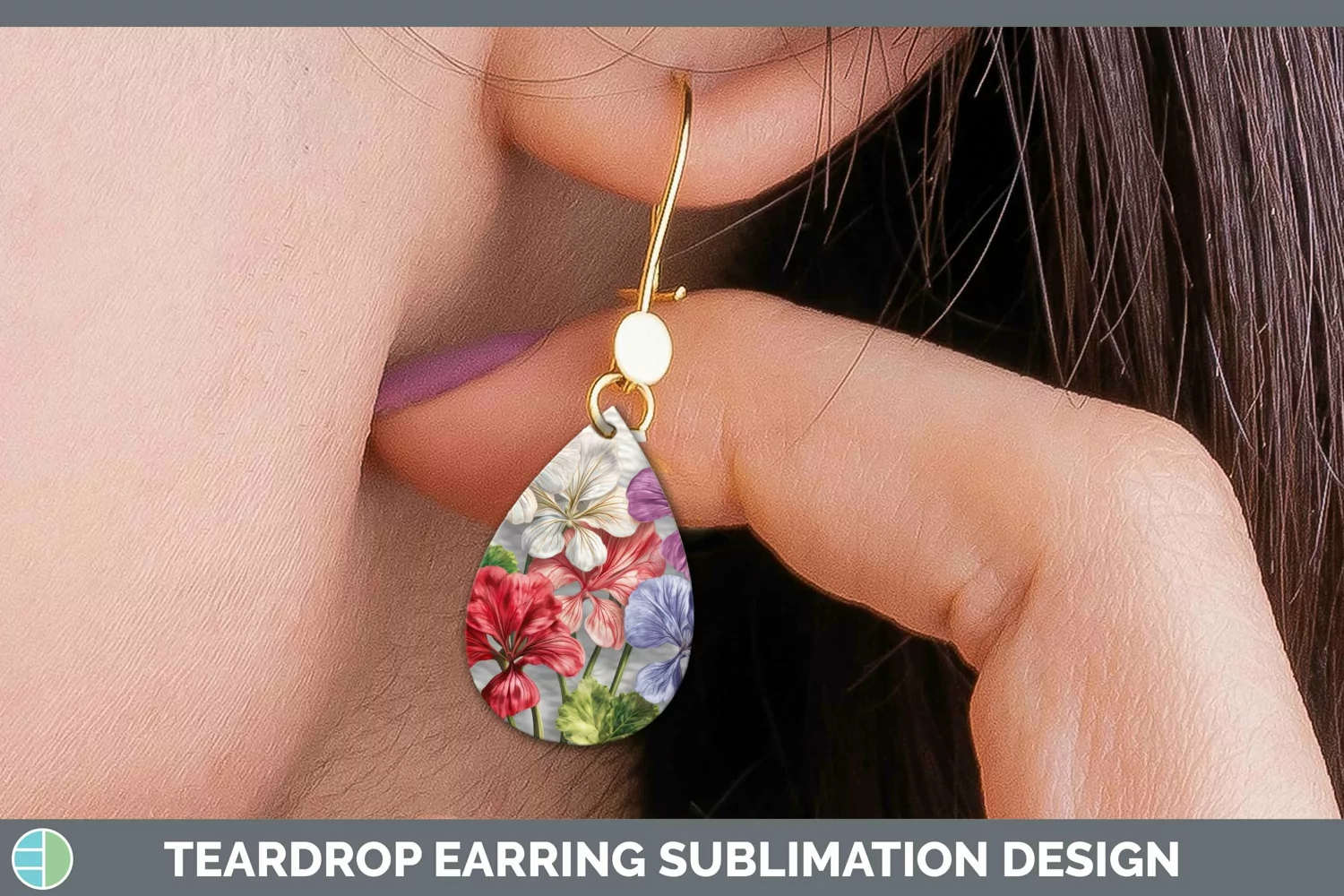 3D Geranium Teardrop Earrings | Sublimation Earrings Designs