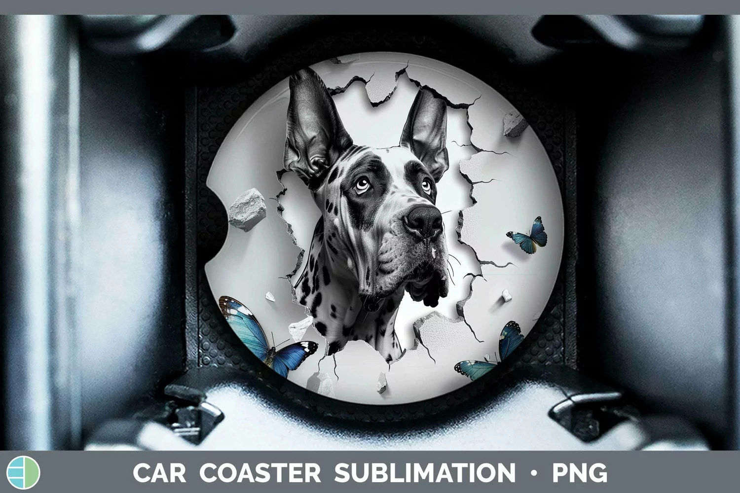 3D Great Dane Car Coaster | Sublimation Coaster Designs