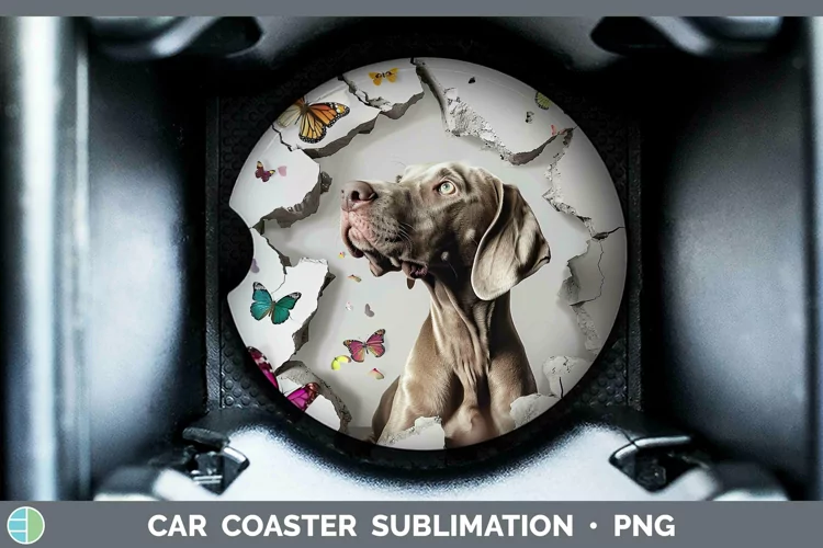 3D Weimaraner Car Coaster | Sublimation Coaster Designs
