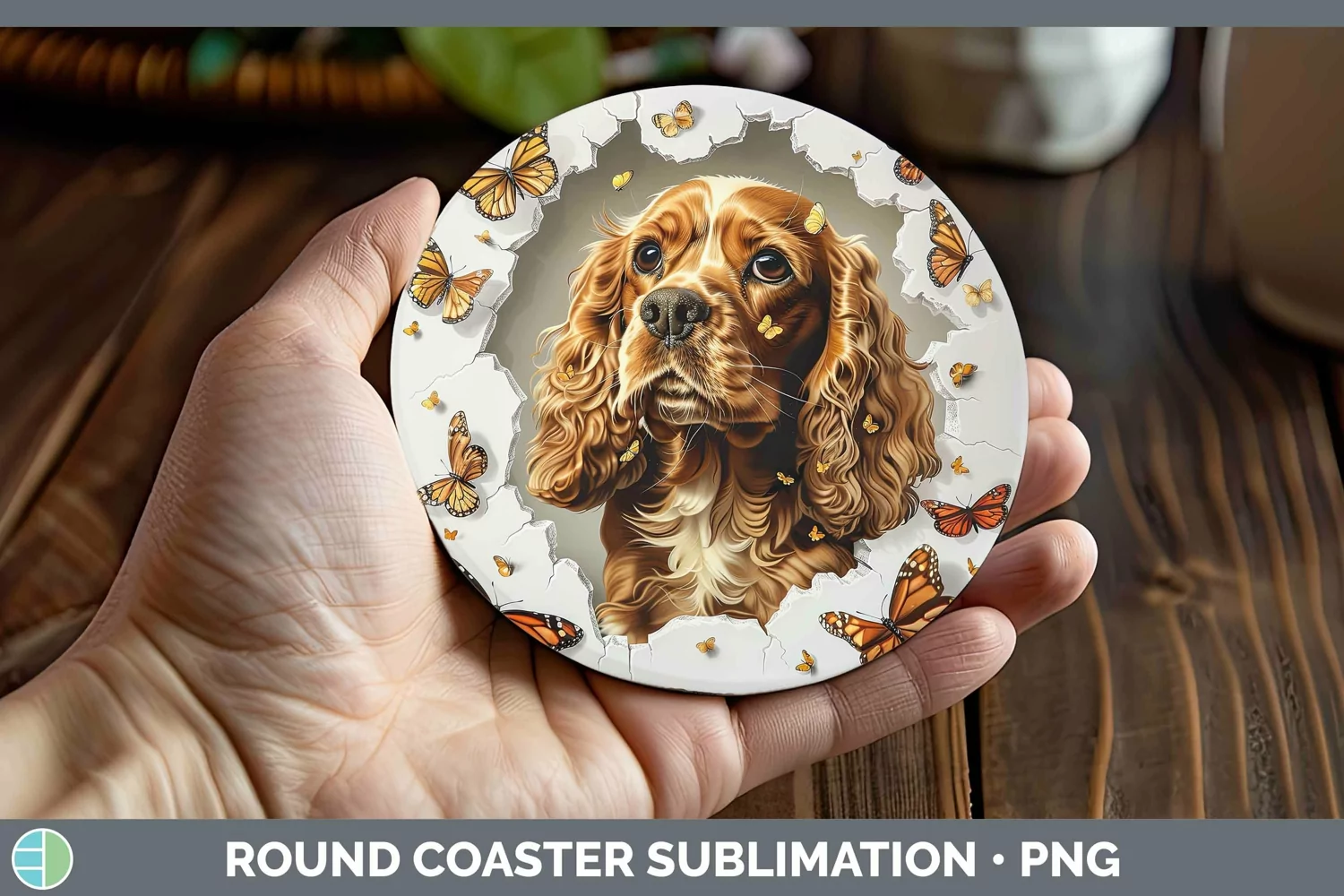 3D Cocker Spaniel Round Coaster | Sublimation Coaster Design