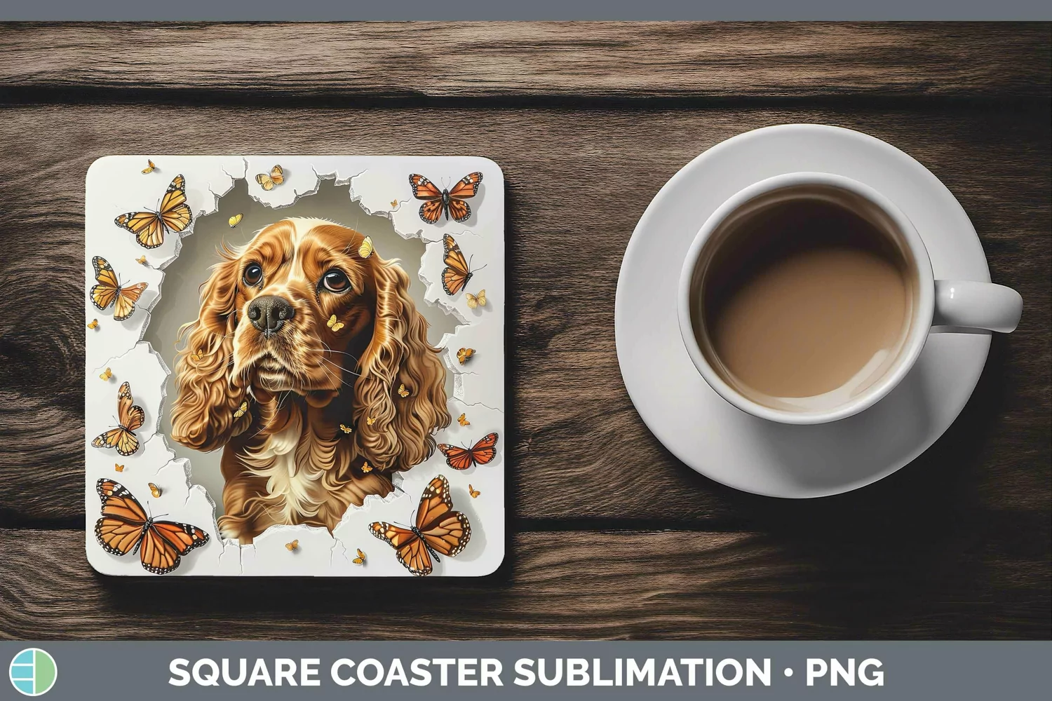 3D Cocker Spaniel Square Coaster | Sublimation Coaster Desig