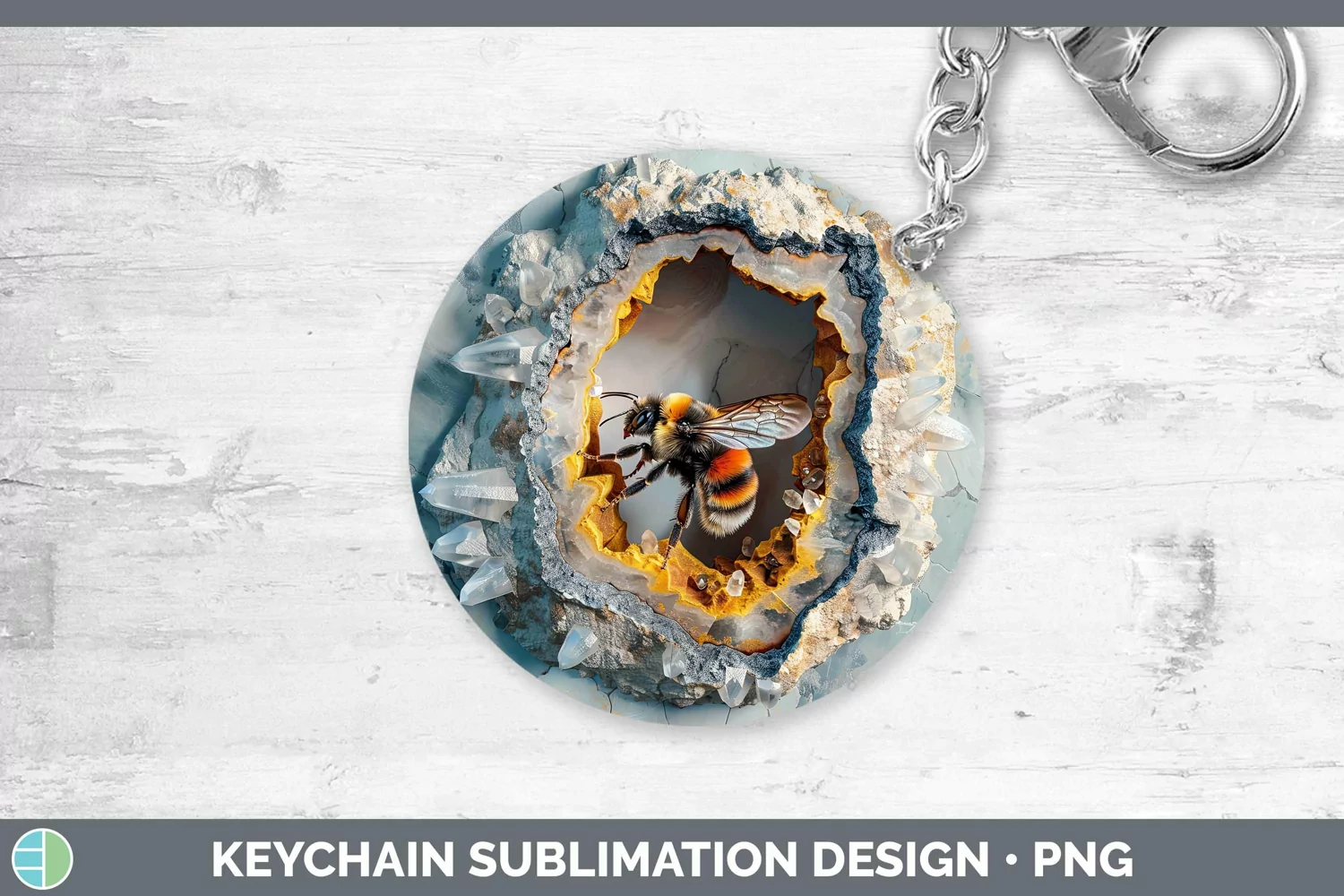 Geode 3D Bee Keychain | Sublimation Keyring Designs