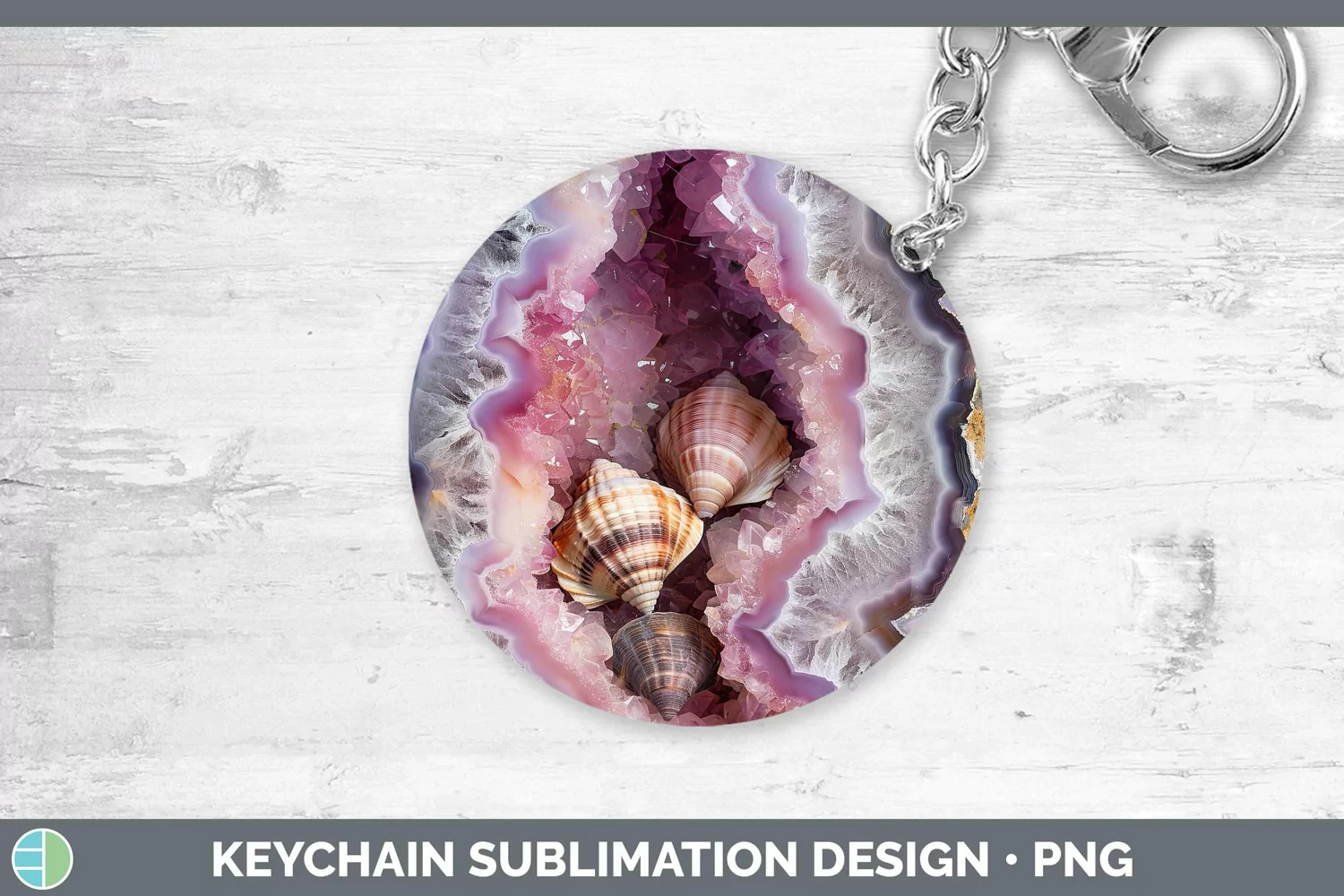 Geode 3D Seashell Keychain | Sublimation Keyring Designs