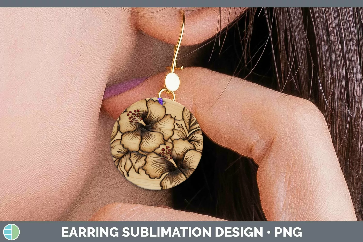 Similar Design Products to Wood Burned Hibiscus Round Earrings Sublimation Designs