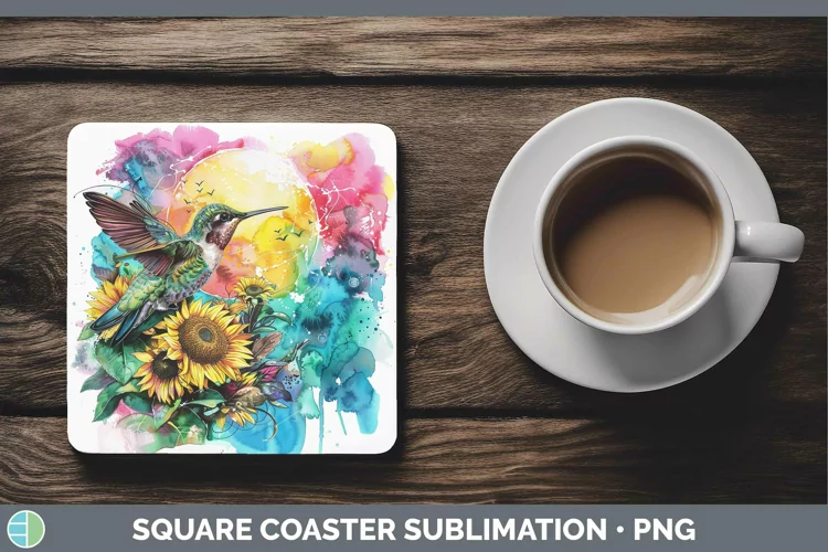 Sunflower Pink Teal Hummingbird Square Coaster Sublimation C