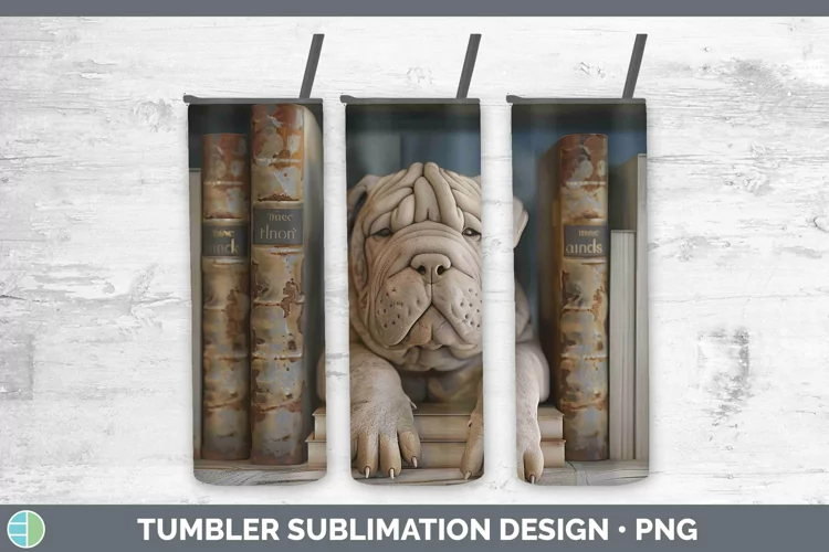 3D Books Chinese Shar-Pei Tumbler Sublimation 20 oz Skinny T