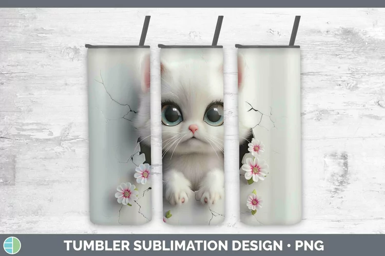 Similar Design Products to 3D White Cat Tumbler Sublimation 20 oz Skinny Tumbler Design