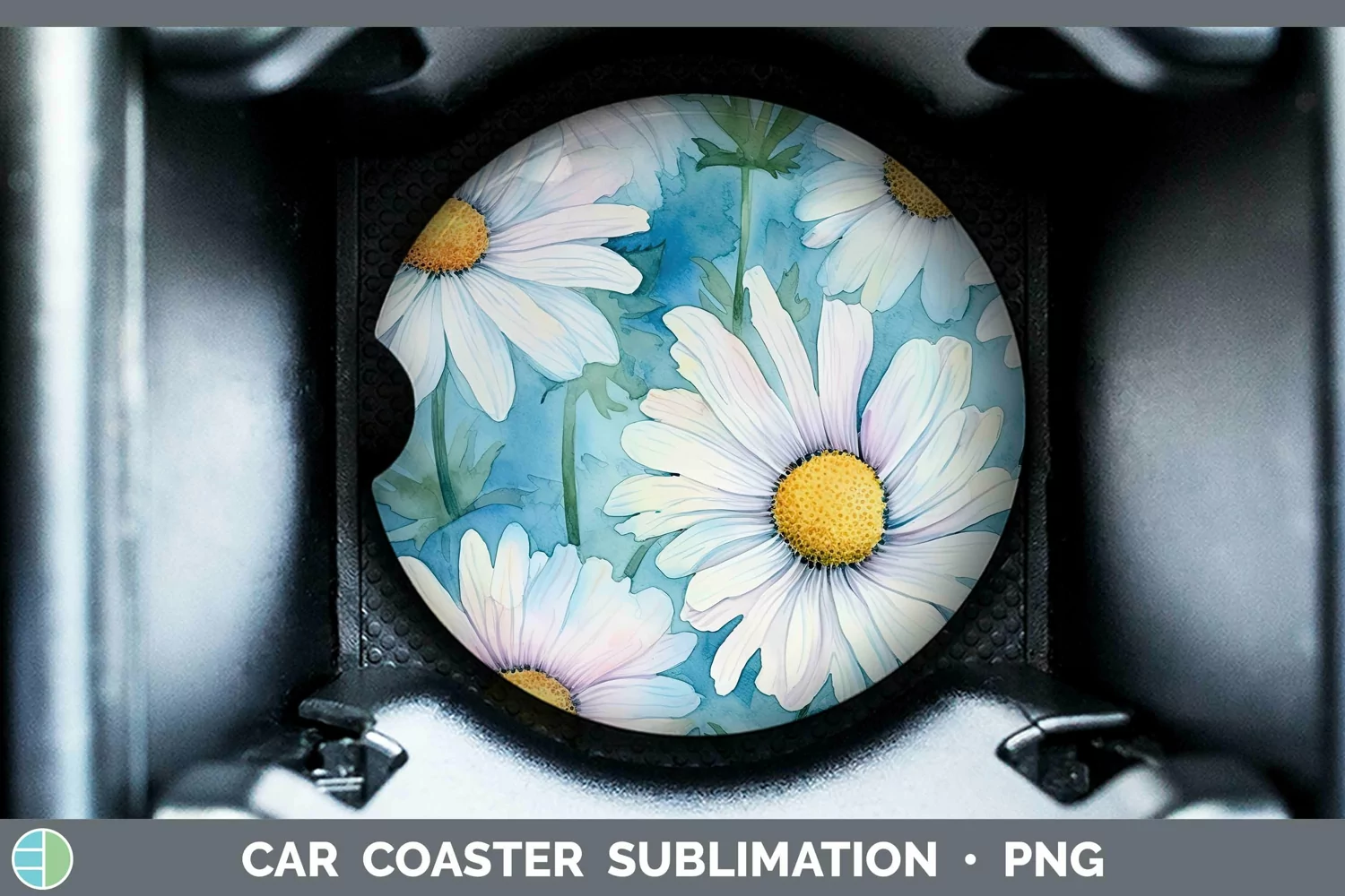 Watercolor Flowers Daisy Car Coaster Sublimation Coaster Des