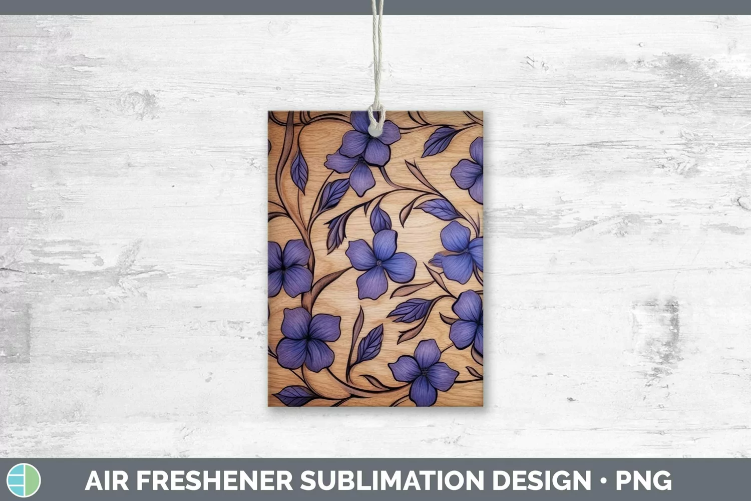 Wood Burned Flowers Periwinkle Air Freshener Sublimation Car