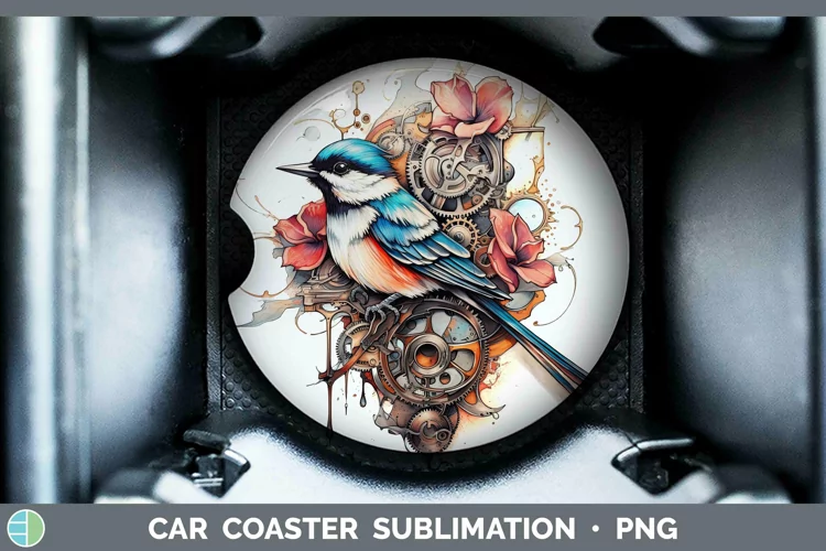 Steampunk Chickadee Car Coaster Sublimation Coaster Designs