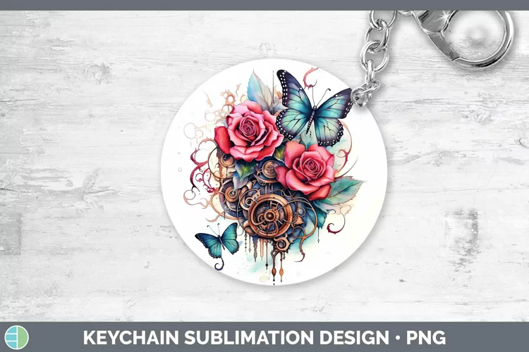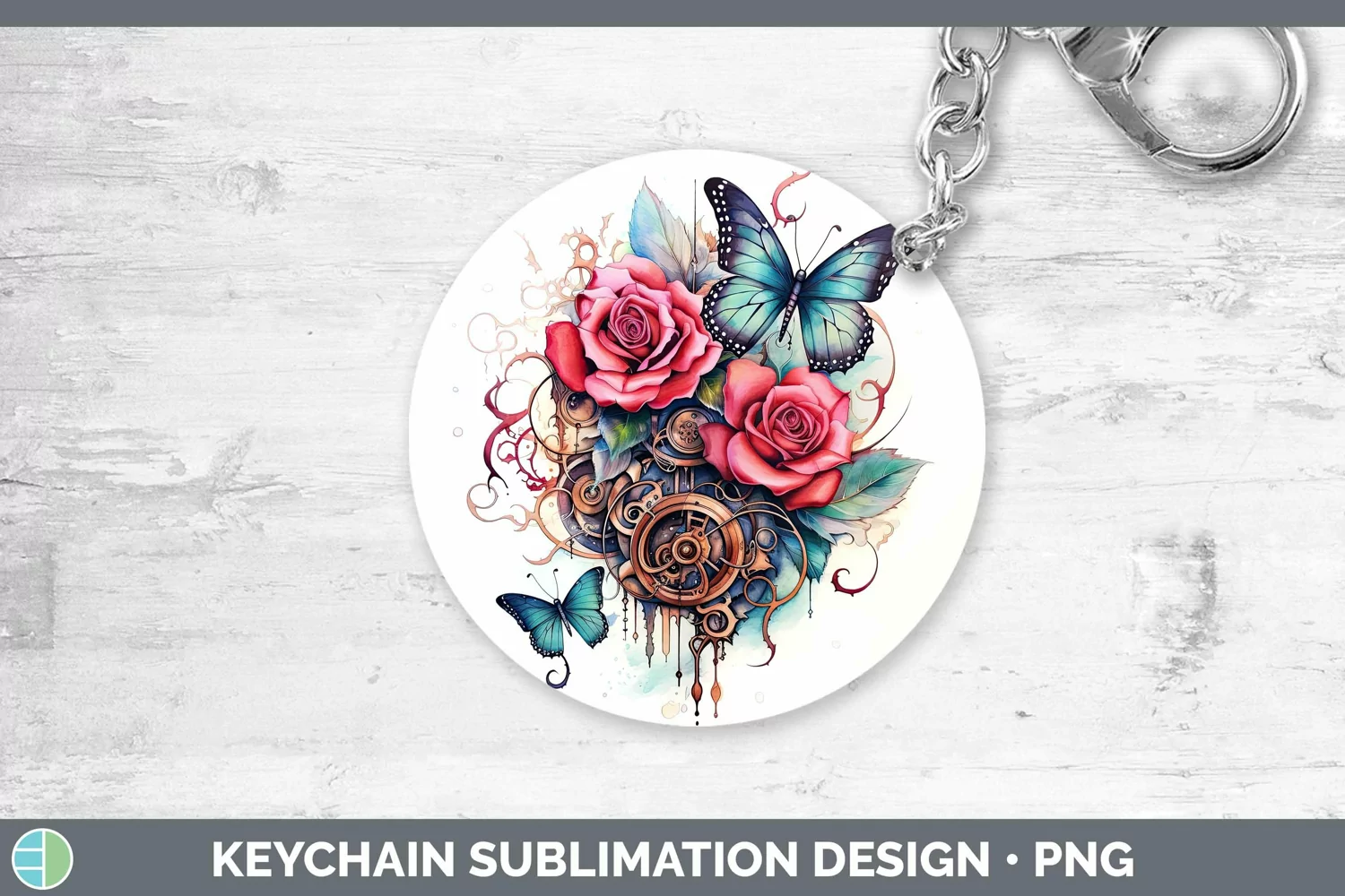 Steampunk Rose Keychain Sublimation Keyring Designs example image 1