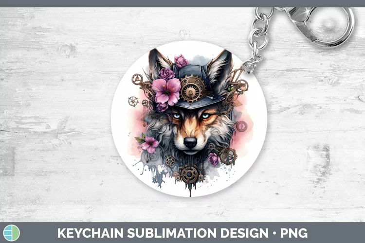 Steampunk Wolf Keychain Sublimation Keyring Designs