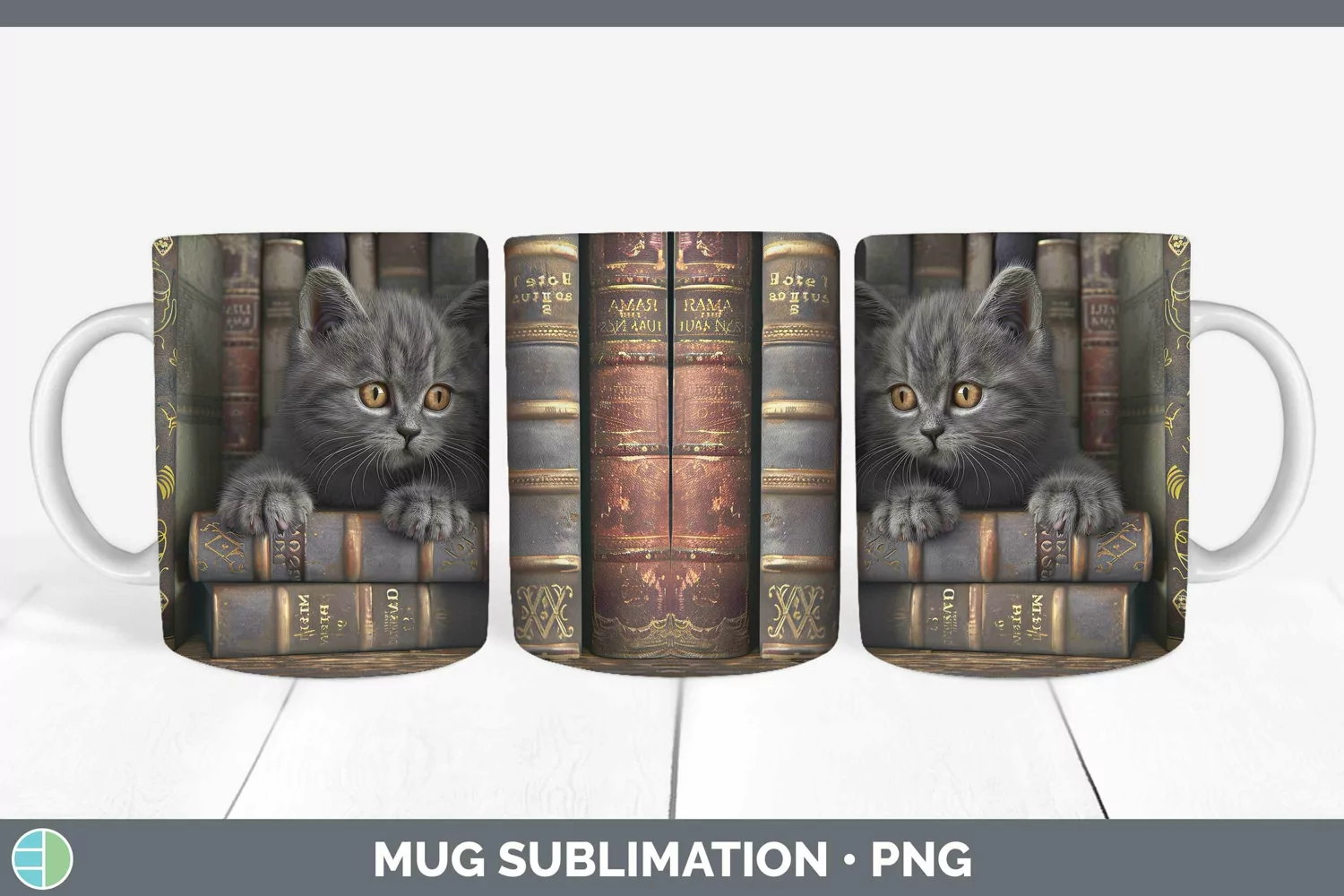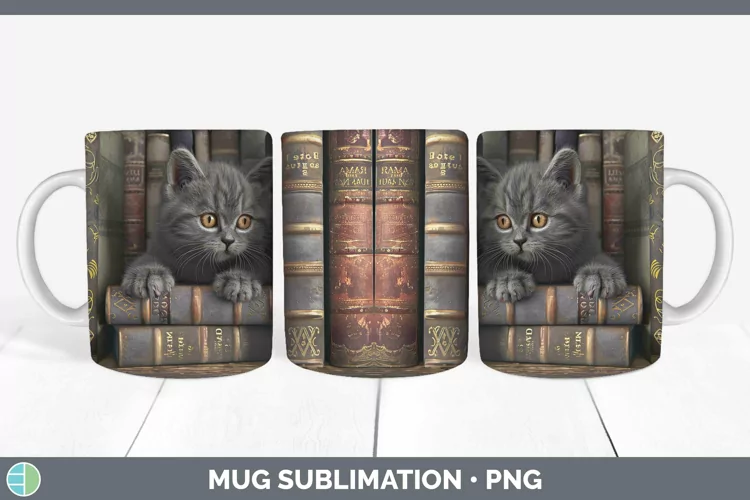 3D Books British Shorthair Cat Mug Wrap Sublimation Coffee C