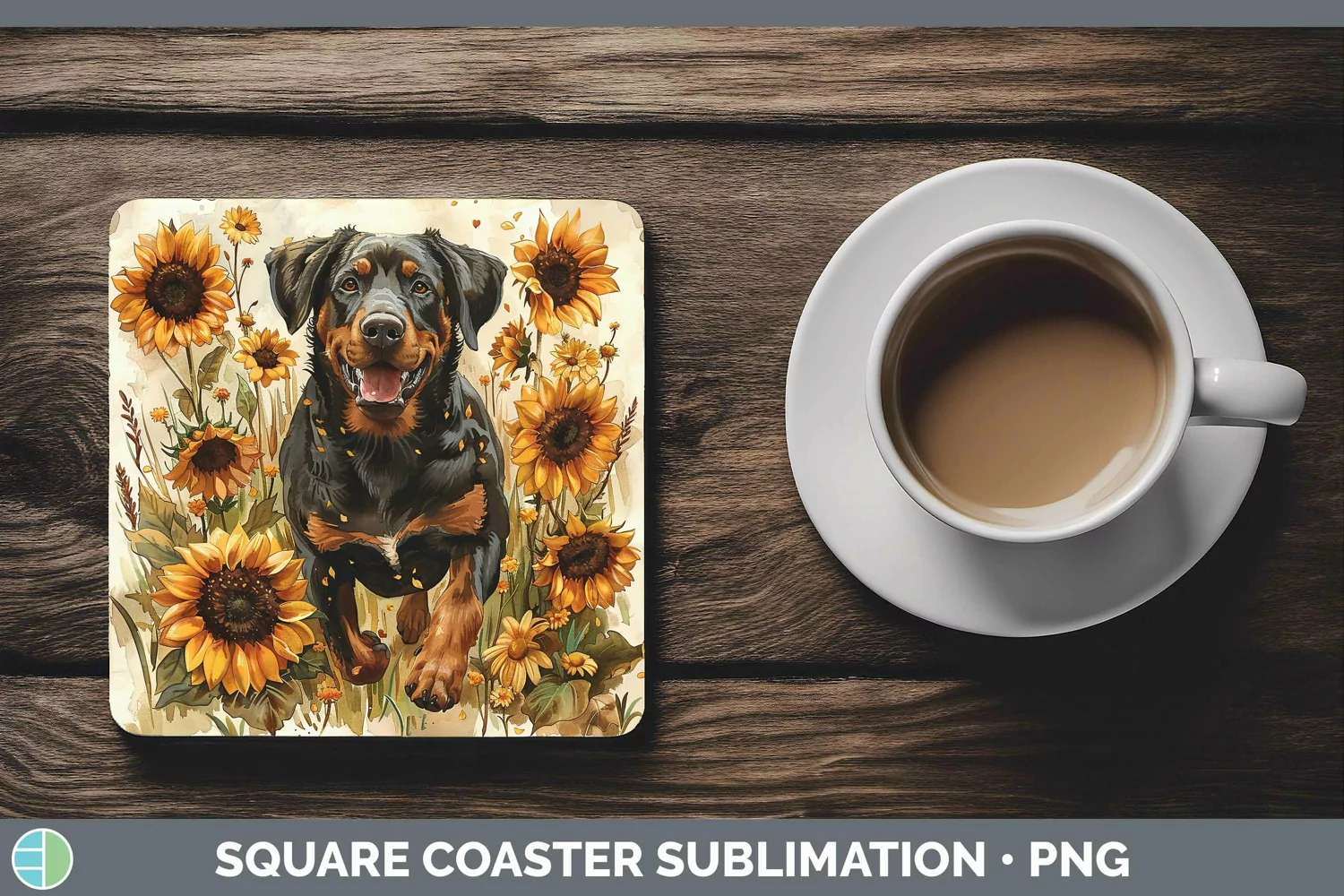 Similar Design Products to Autumn Sunflower Dog Doberman Pinscher Square Coaster Sublim