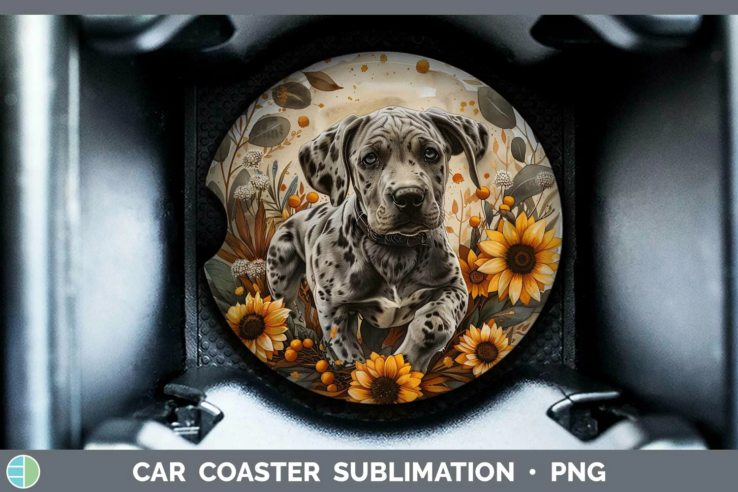 Autumn Sunflower Dog Great Dane Car Coaster Sublimation Coas
