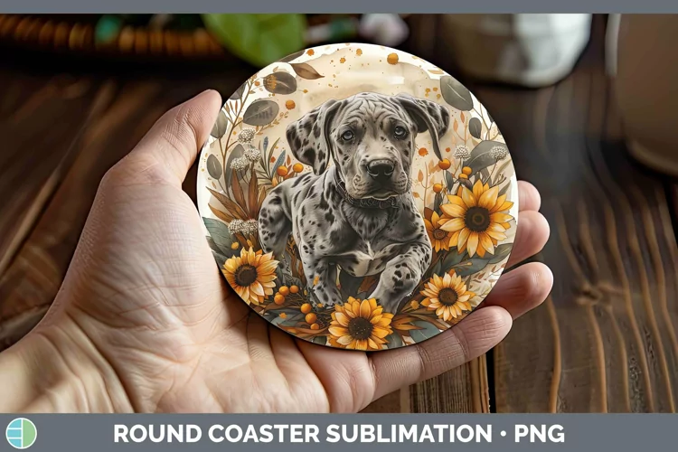 Autumn Sunflower Dog Great Dane Round Coaster Sublimation Co