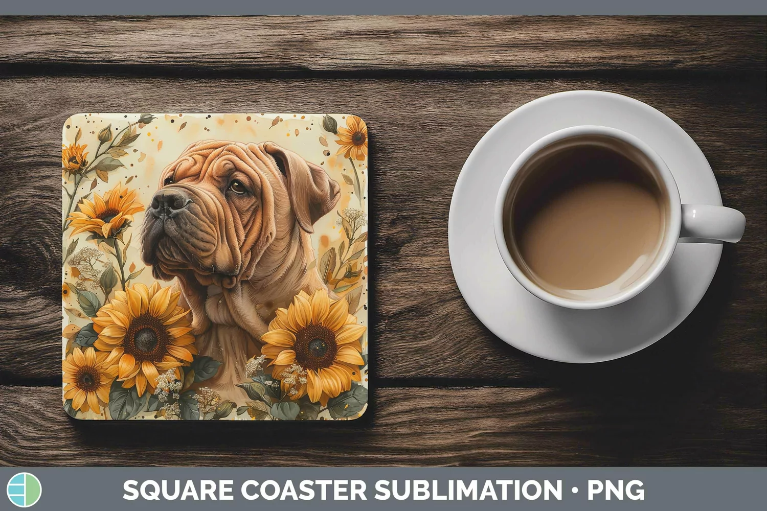 Similar Design Products to Autumn Sunflower Dog Shar Pei Square Coaster Sublimation Coa