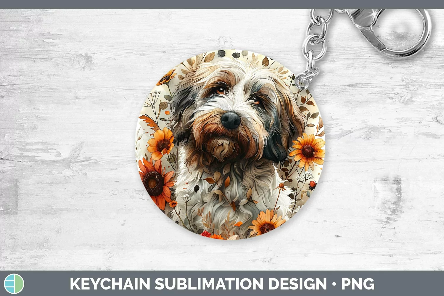 Similar Design Products to Autumn Sunflower Dog Old English Sheepdog Keychain Sublimati
