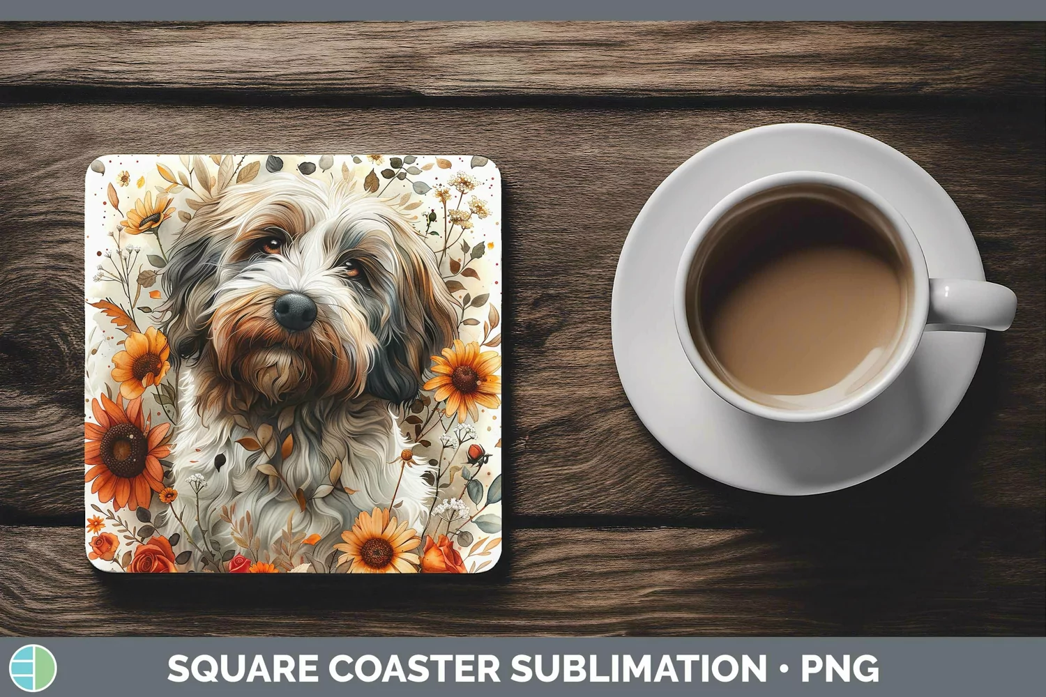 Autumn Sunflower Dog Old English Sheepdog Square Coaster Sub
